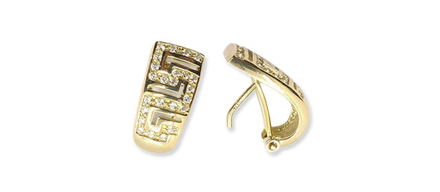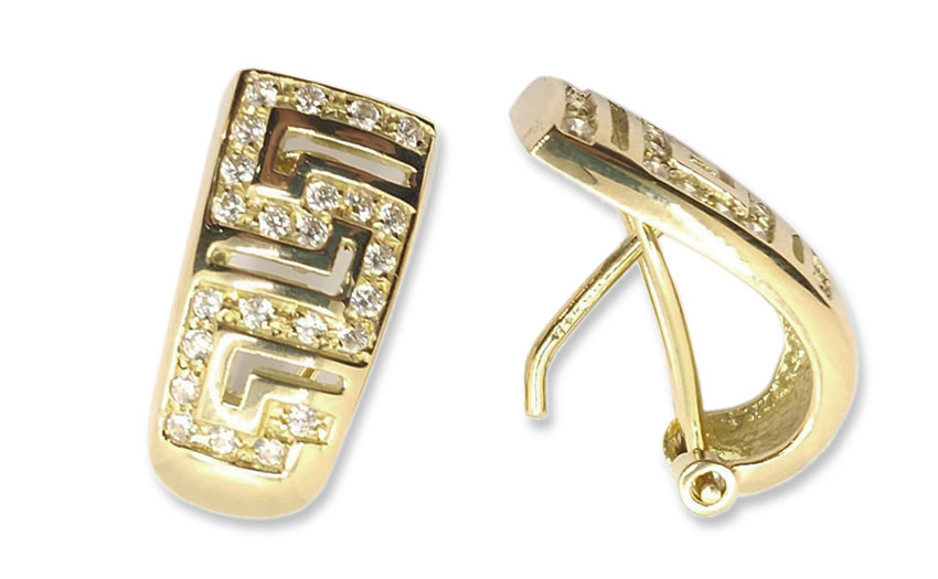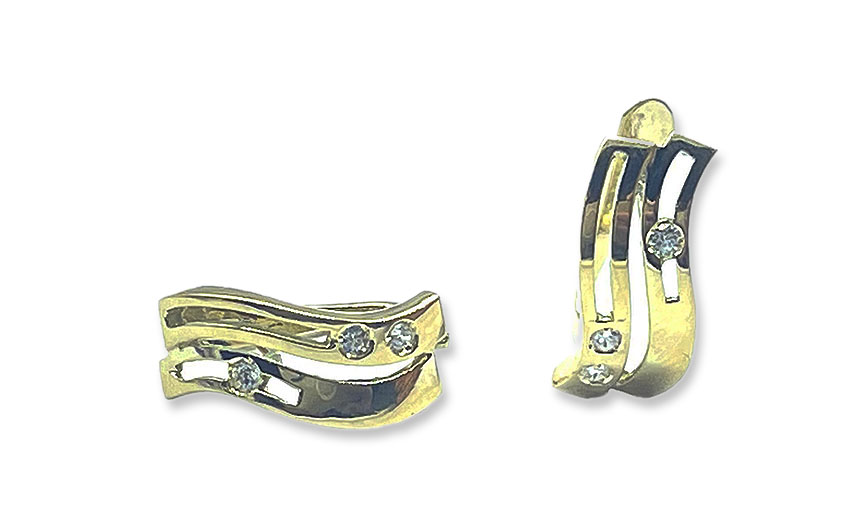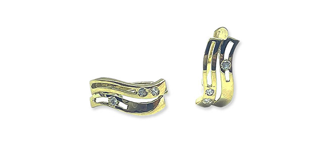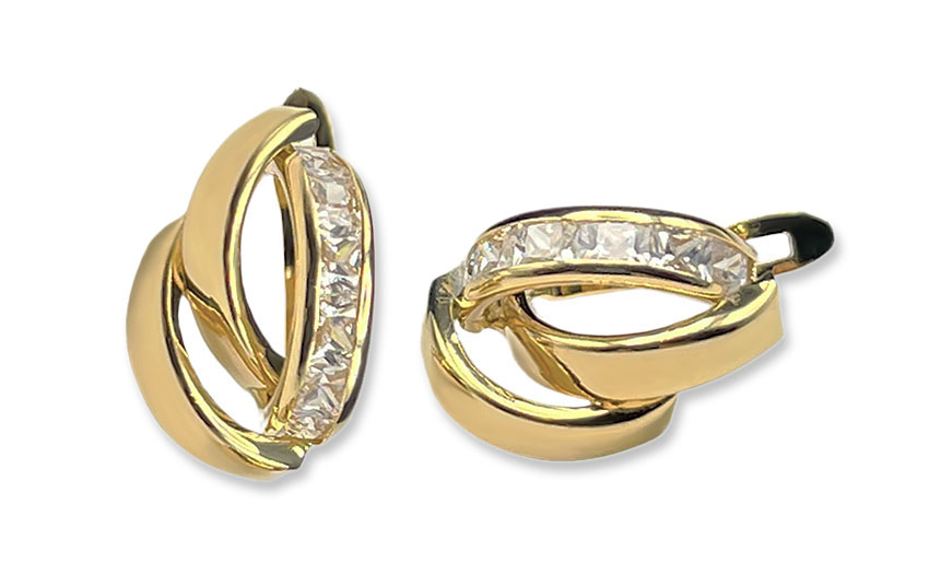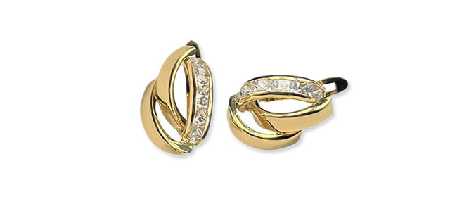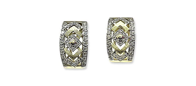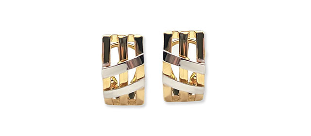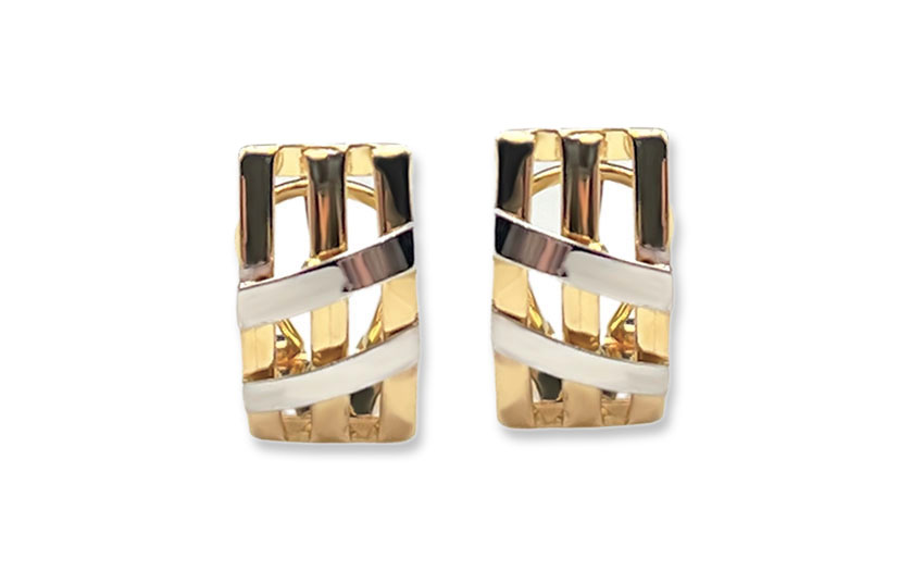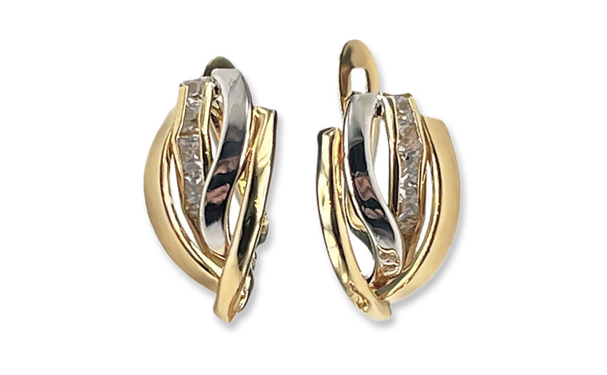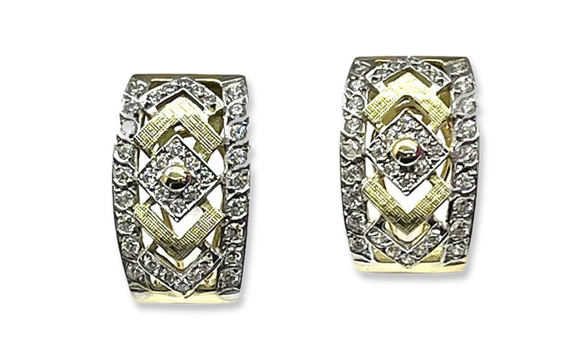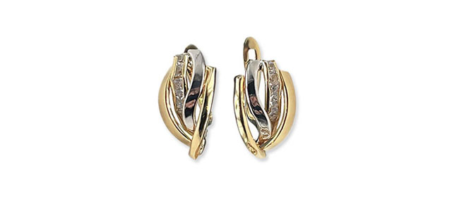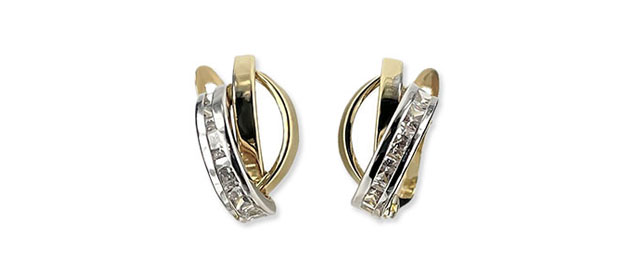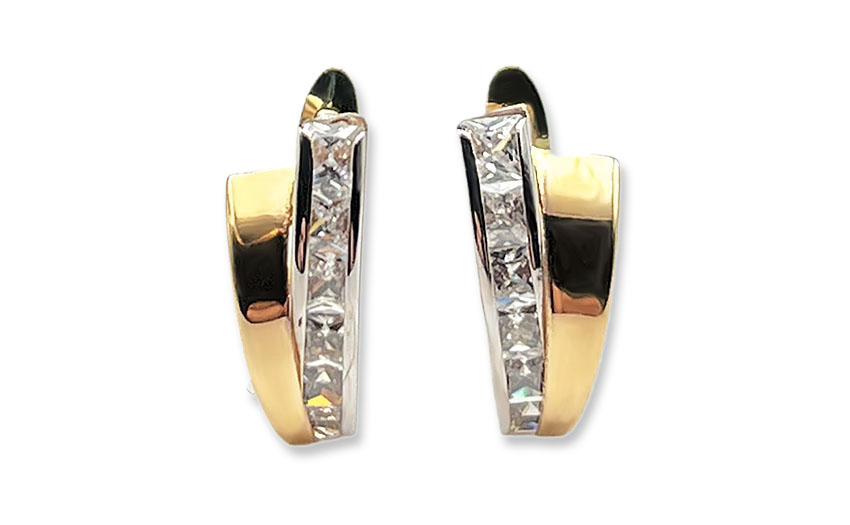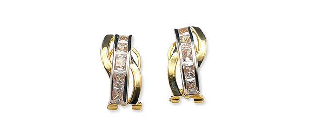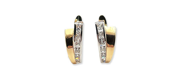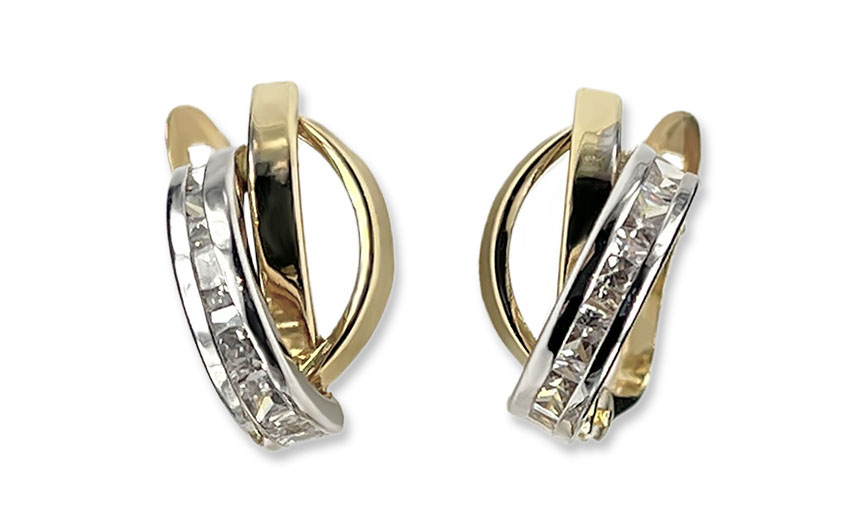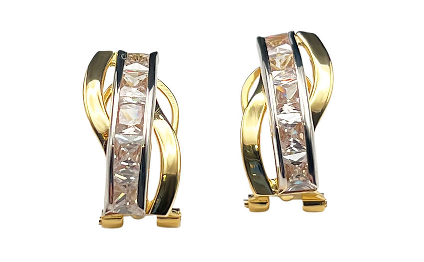 Pendientes bicolor en carril. Banda con circonitas engarce en carril