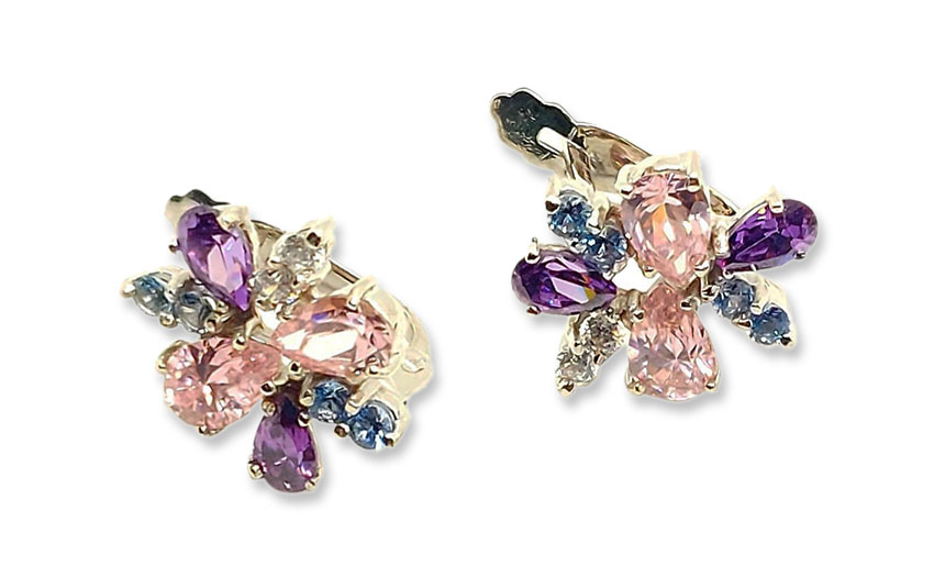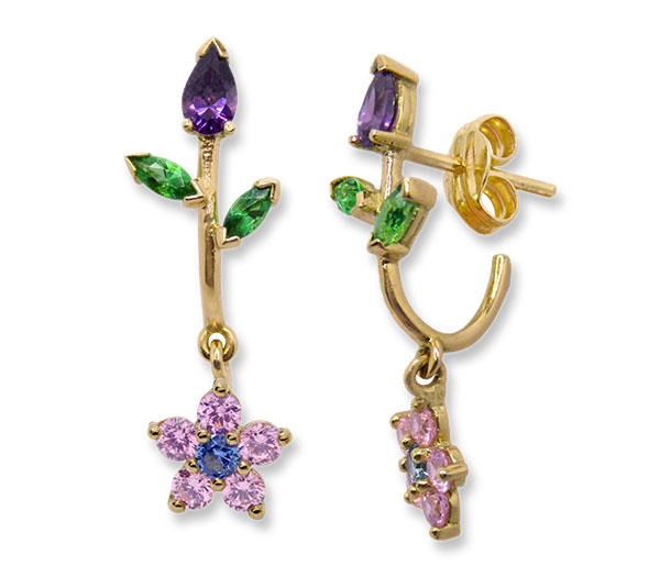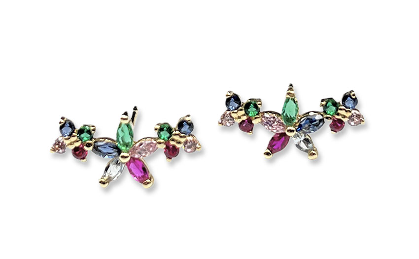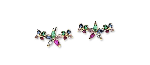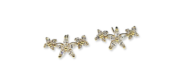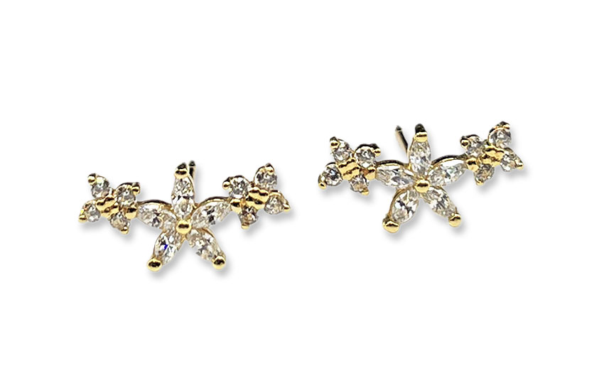 Pendientes trepadores en circonitas incoloras, engarzados en garra