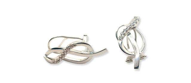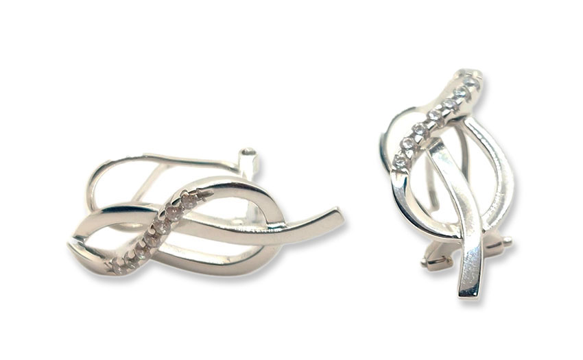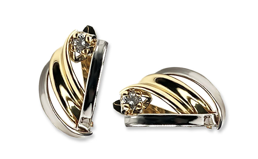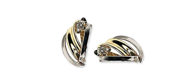 Pendientes bicolor. Banda con circonitas y banda lisa metal