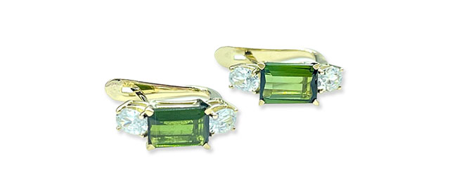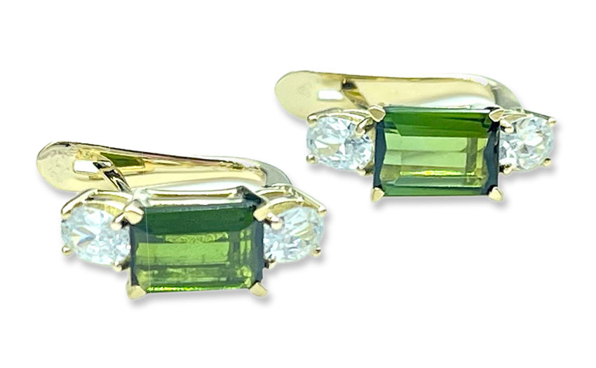 Pendientes turmalina natural talla octógono 7x5mm con circonita