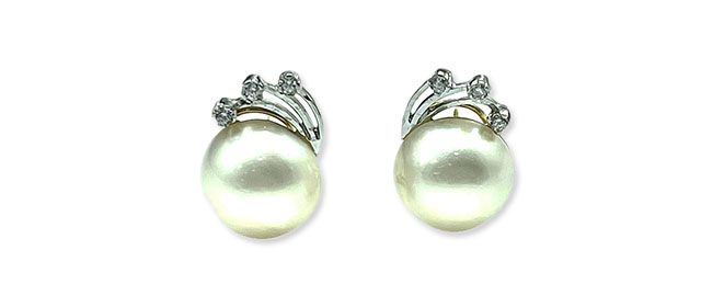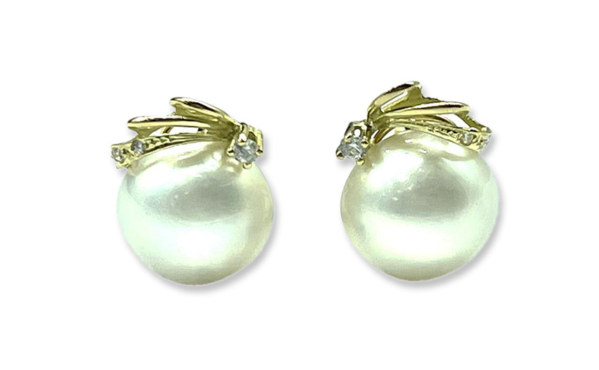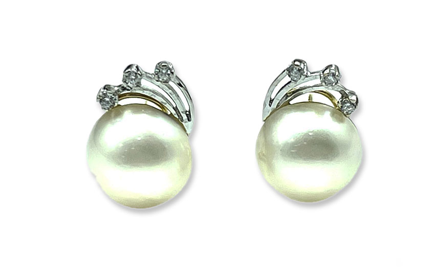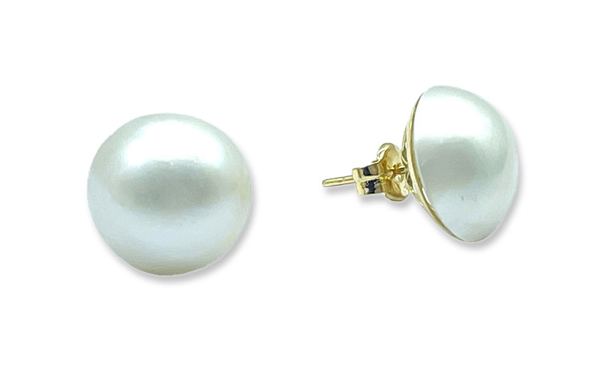 Pendientes perla japonesa Mabe de 13-14 mm con circonitas