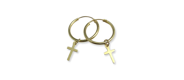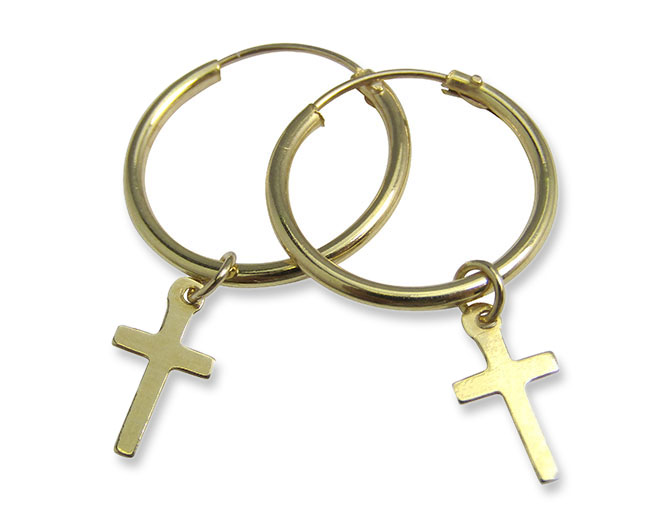 Pendientes de aro media caña hueco con abalorio cruz plana