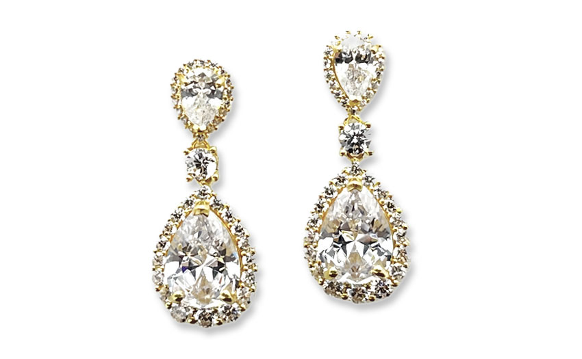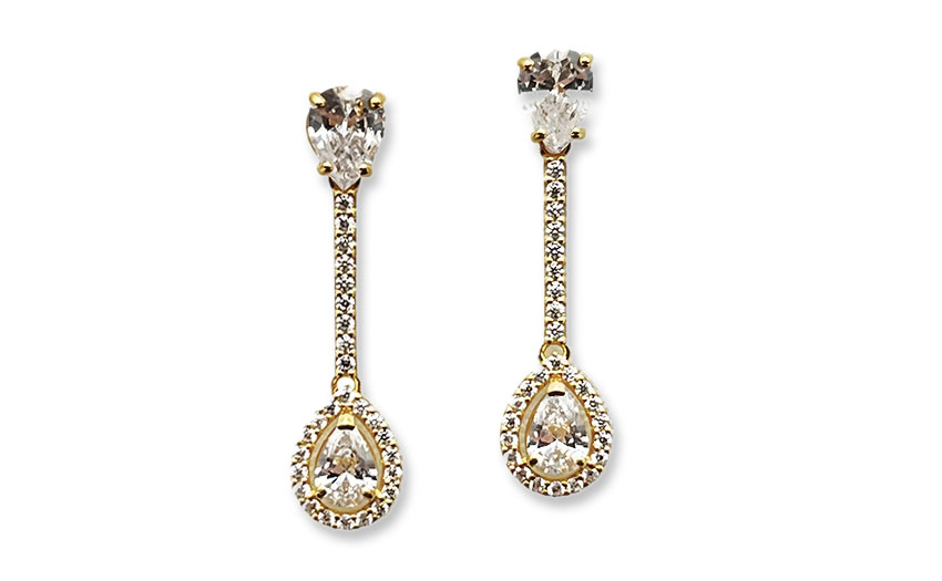 Circonita en talla lágrima, orla incolora inferior y circonita lágrima central