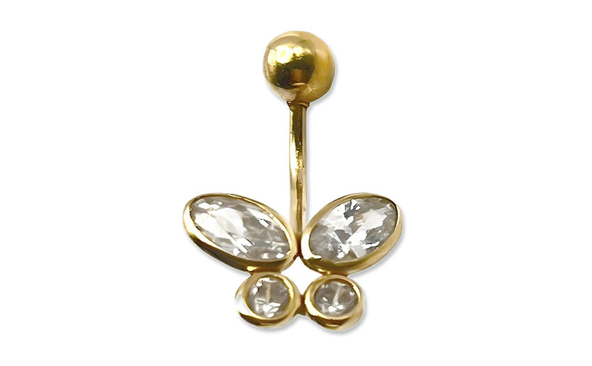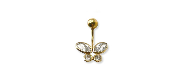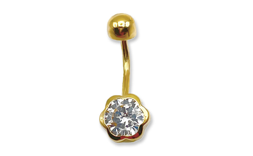 Piercing ombligo cuatrébol bisel de oro y piedra incolora