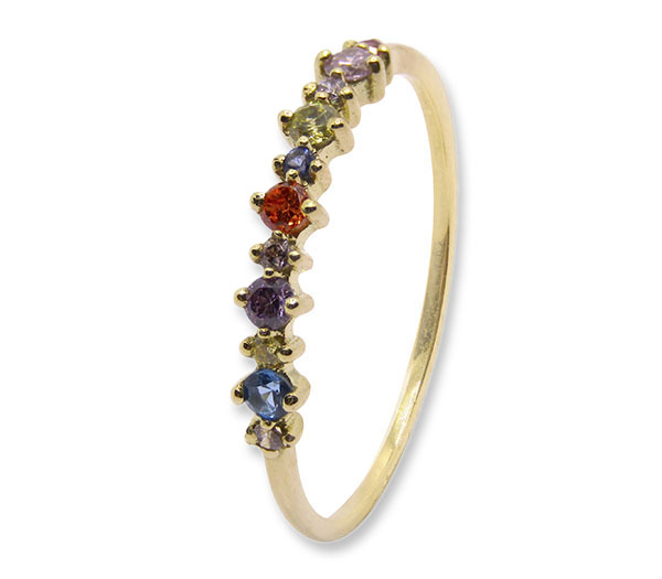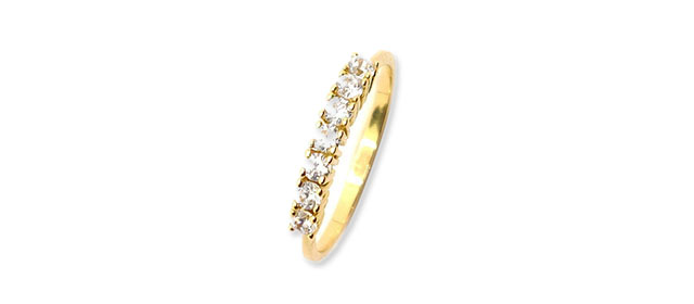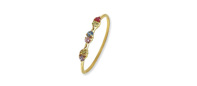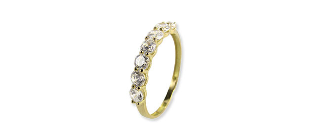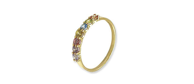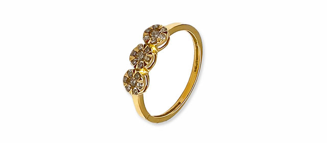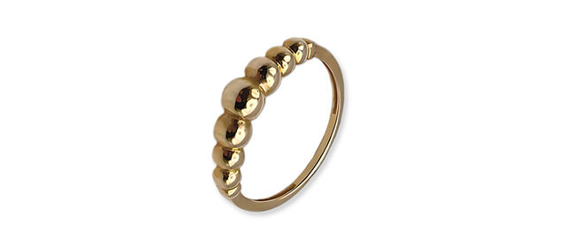 Sortija de oro con 9 bolas en disminución. Brazo fino