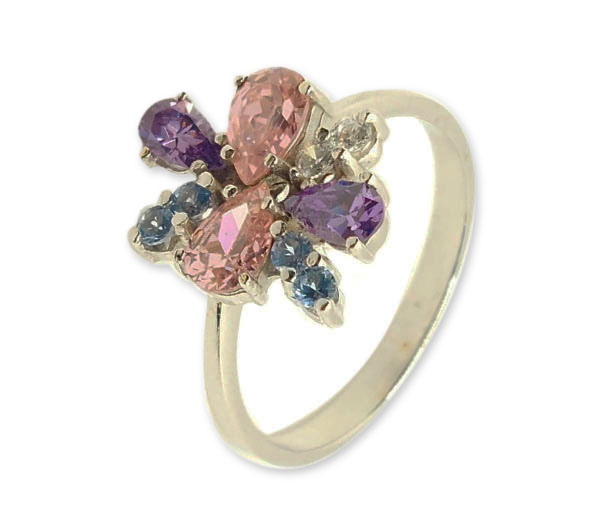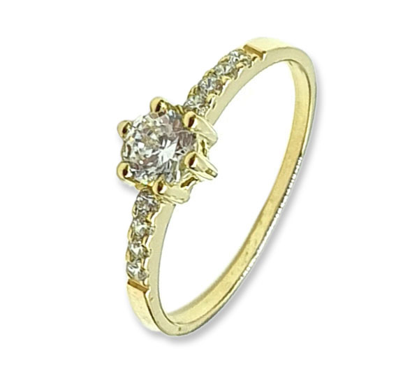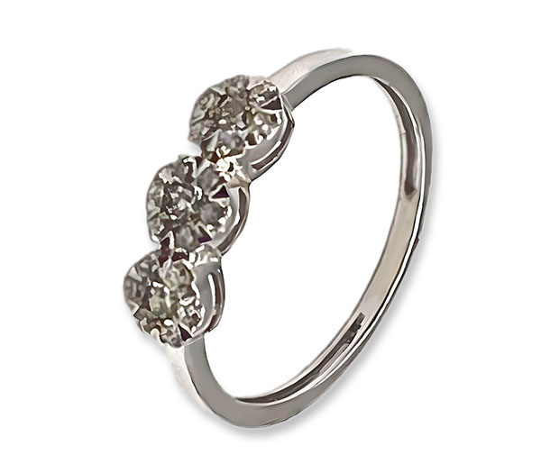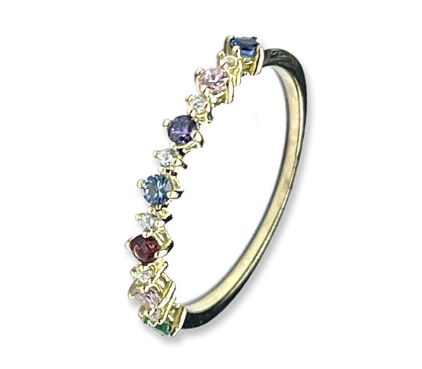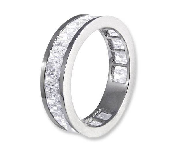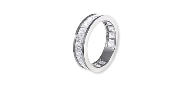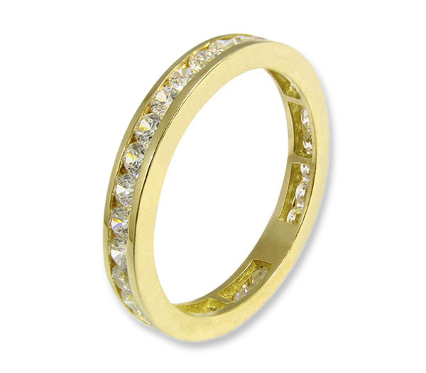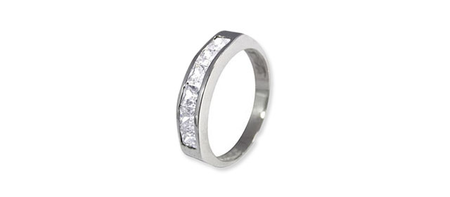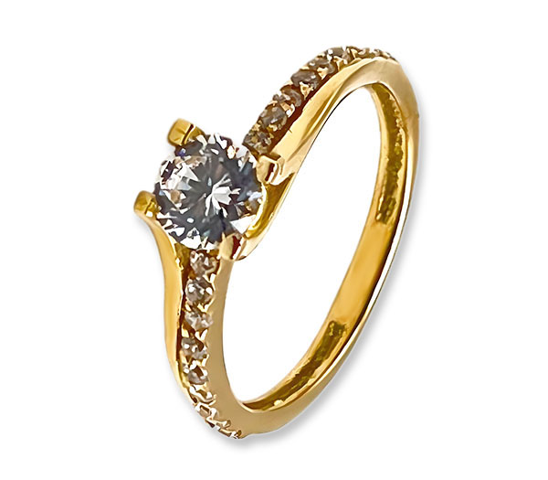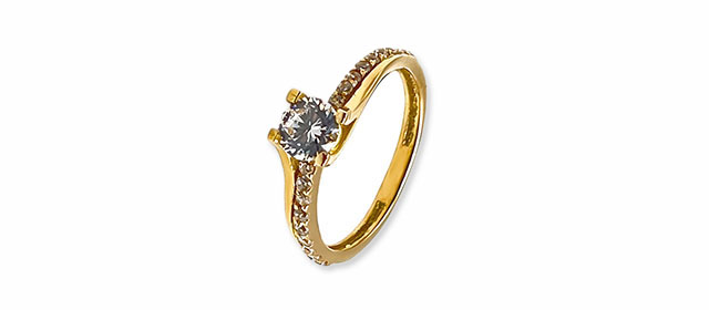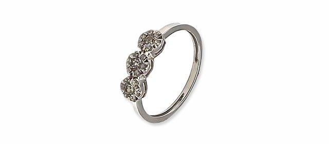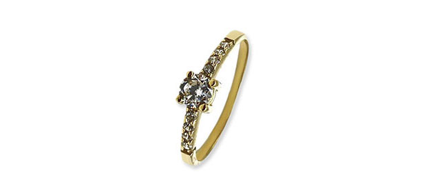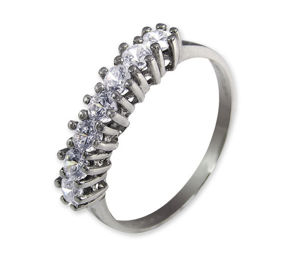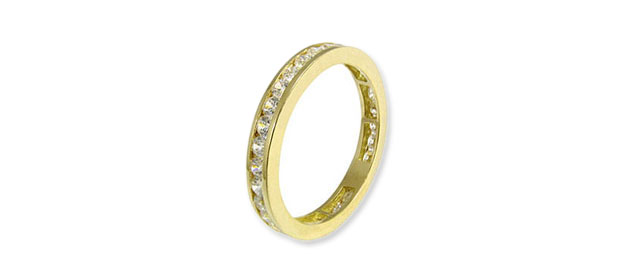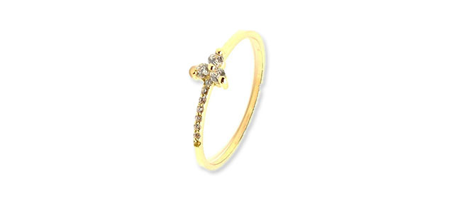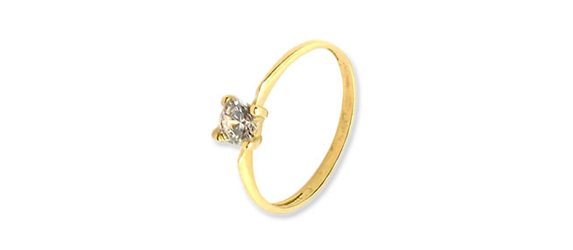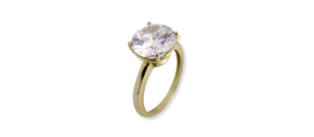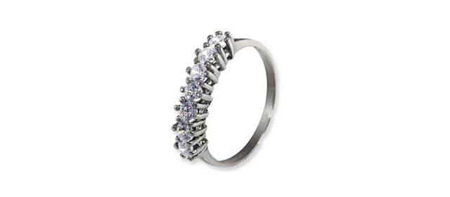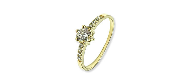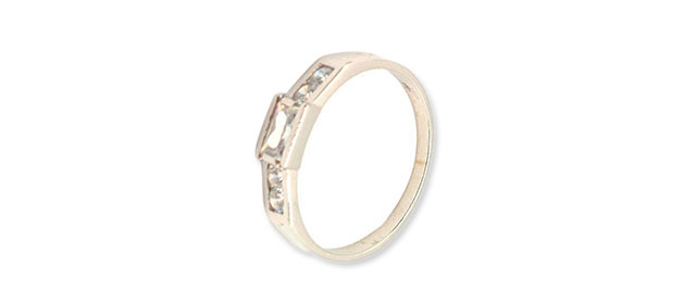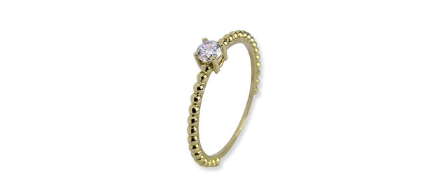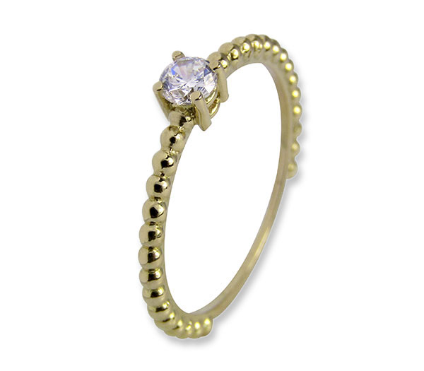 Anillo con esferas que rodean el diámetro y piedra sitética incolora central