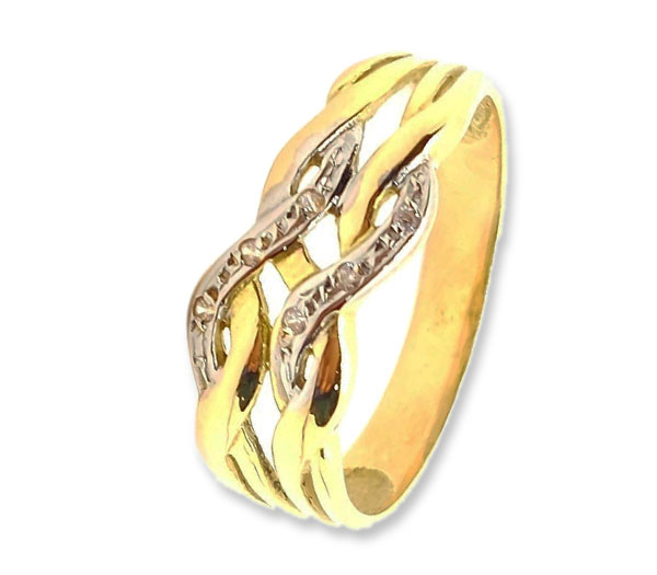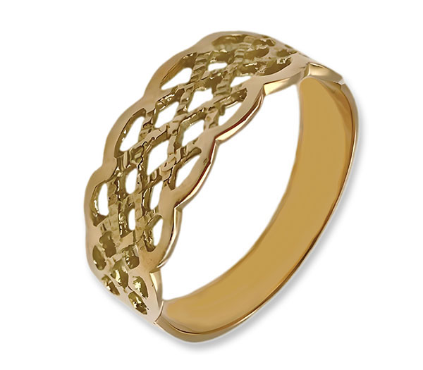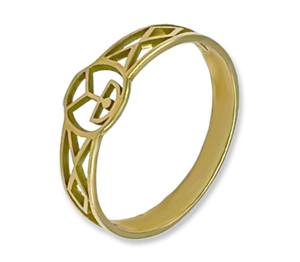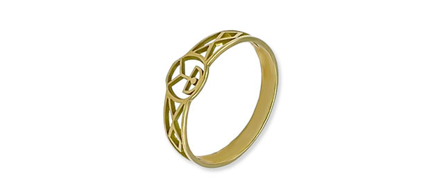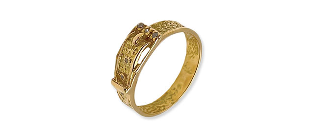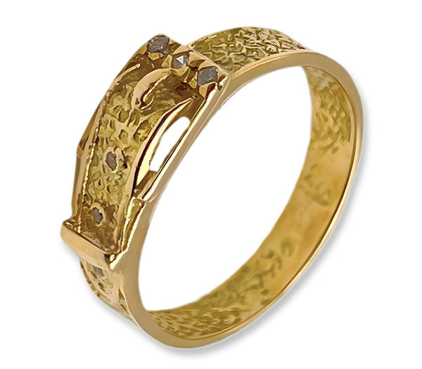 Sortija de oro motivo ebilla cinturón grabado. Brazo recto