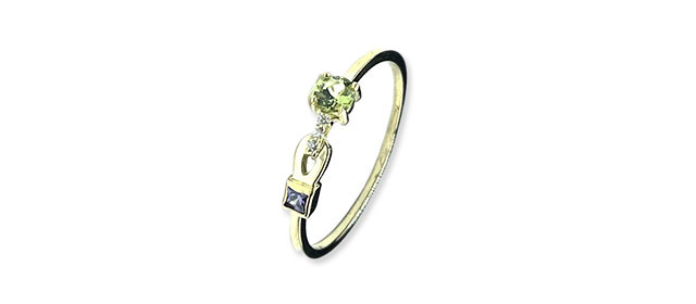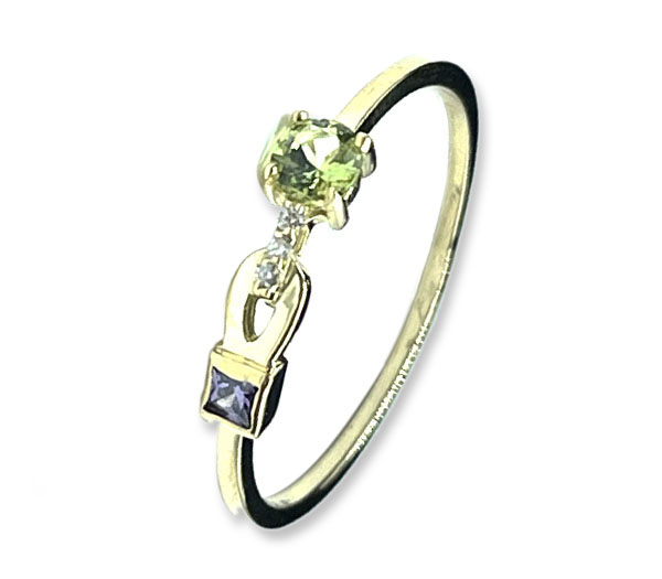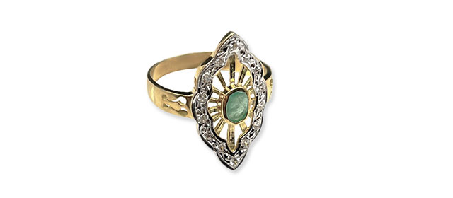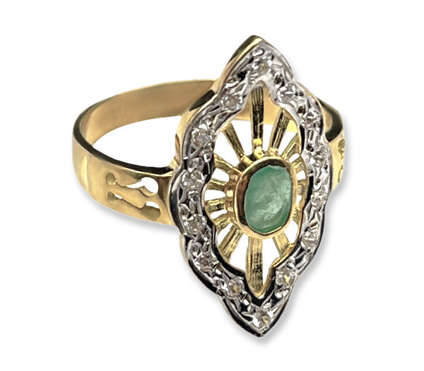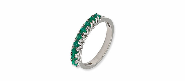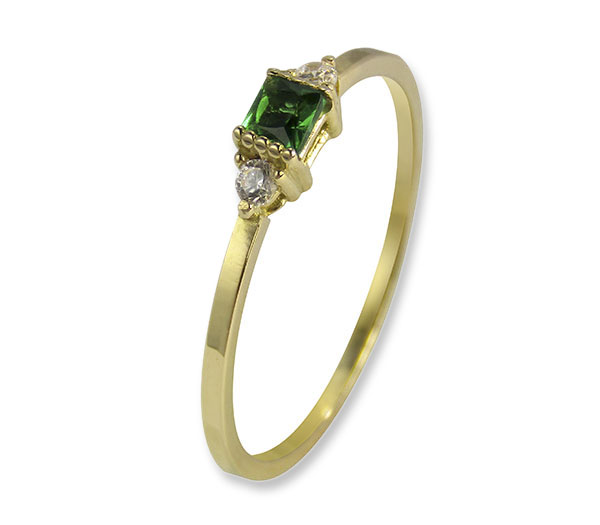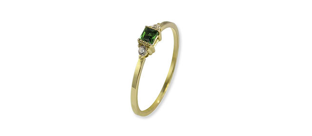 Anillo con piedra central carré 3x3mm en verde esmeralda