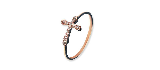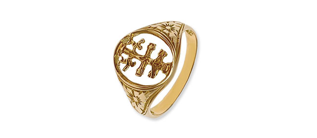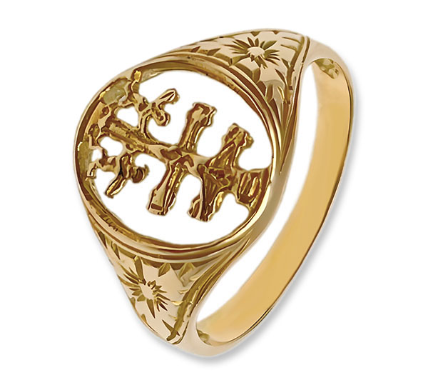 Sortija de oro Cruz de Caravaca con motivo de ángeles