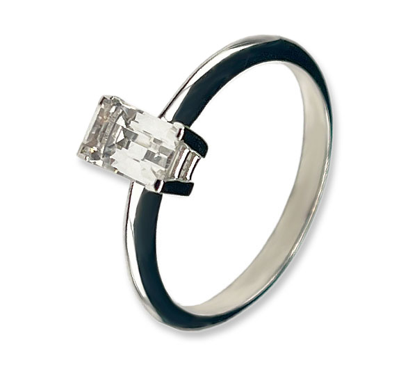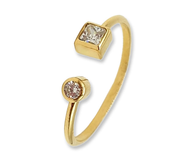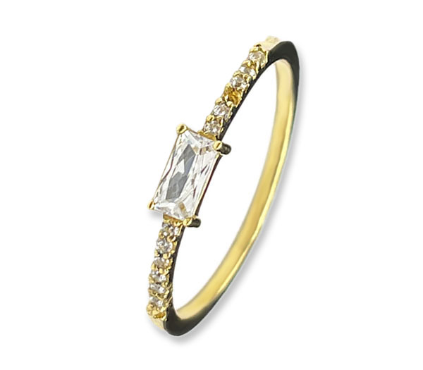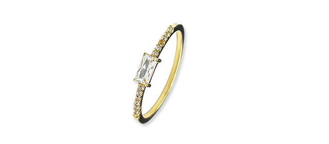Anillo minimalista de la colección Twins con gema central sintética incolora