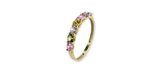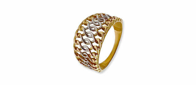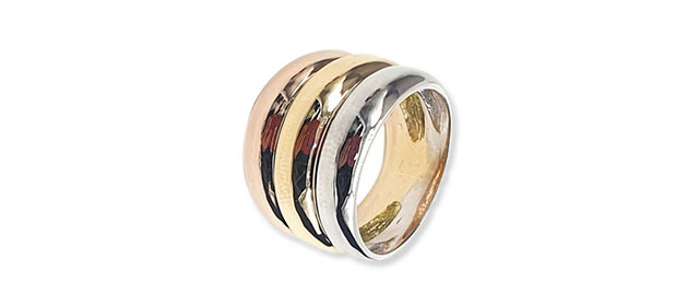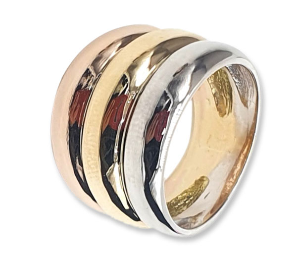 Sortija de oro tricolor en amarillo, rosa y blanco bombé