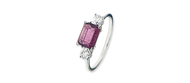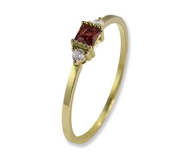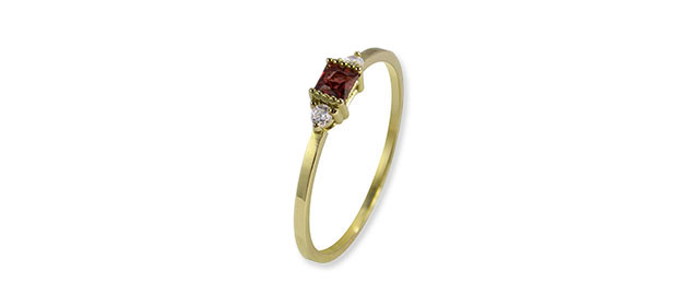 Anillo con piedra central carré 3x3mm en rojo rubí