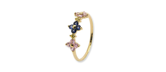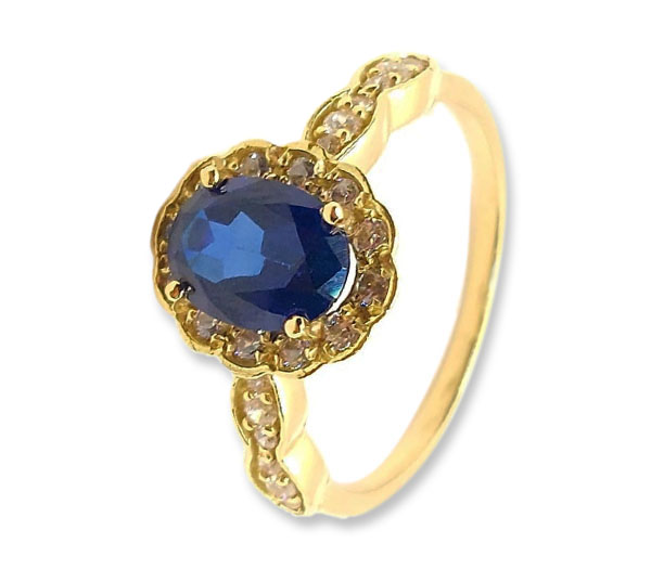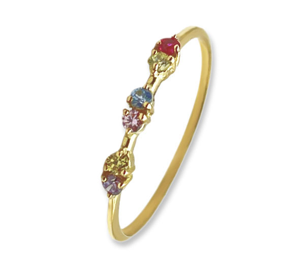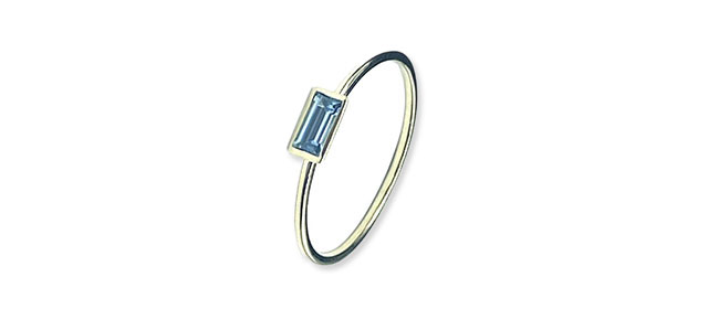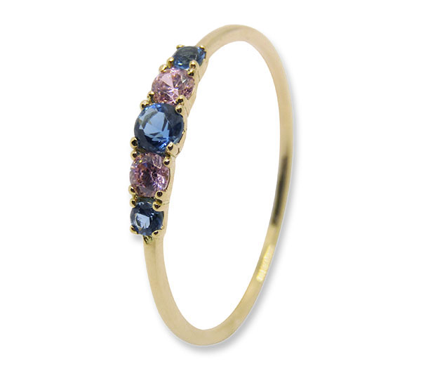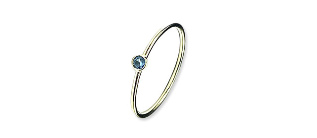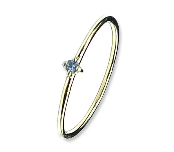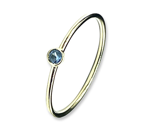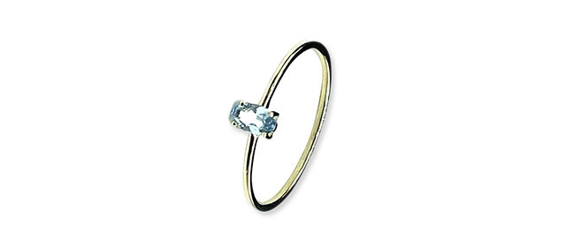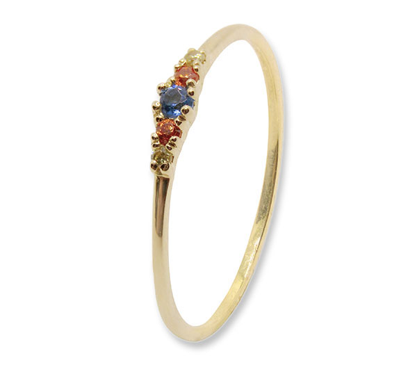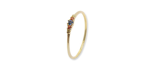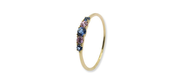 Anillo minimalista de la colección Twins en oro de 18Kt y gema central sintética en azul
