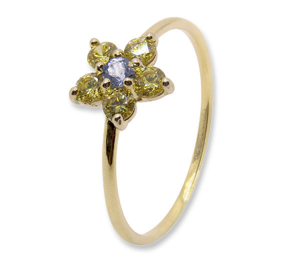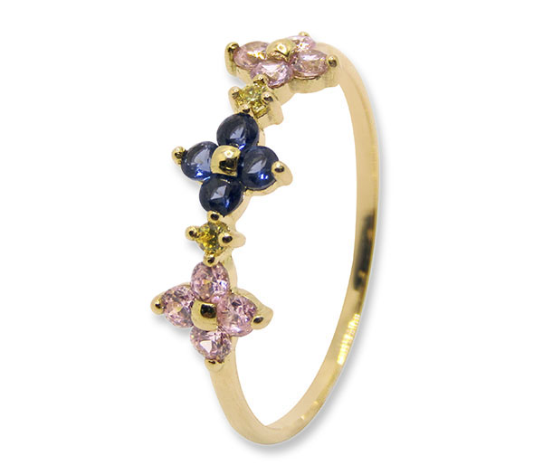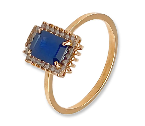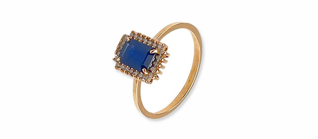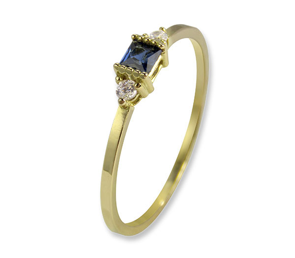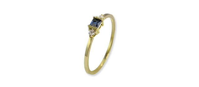 Anillo con piedra central carré 3x3mm en azul zafiro