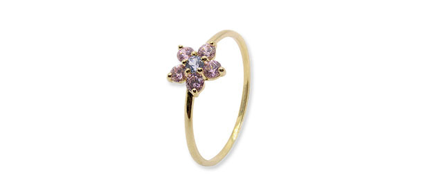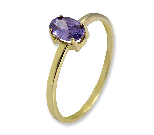 Anillo minimalista de la colección Twins con gema central sintética en amatista