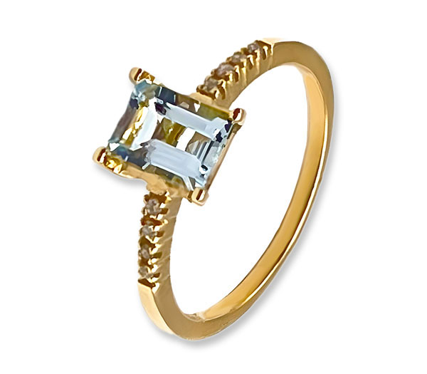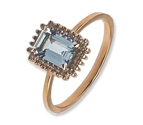 Sortija Aguamarina 7x5 octógono 0,94C y orla brillantes