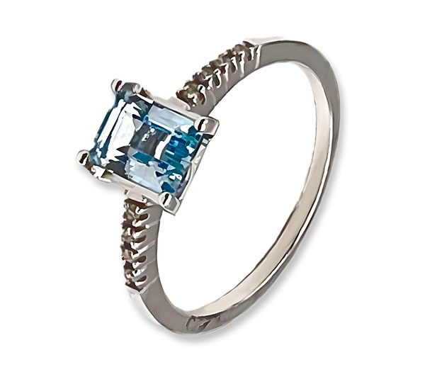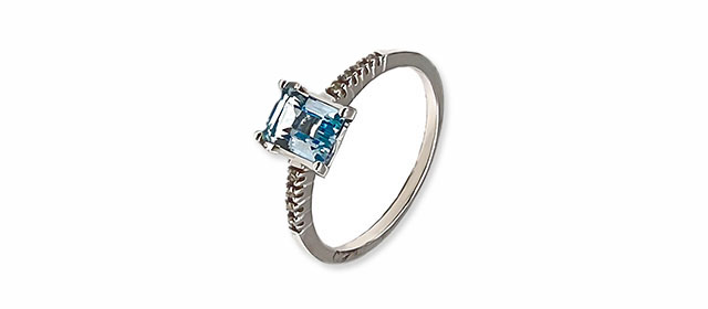 Anillo en oro blanco Blue Lady Aguamarina con 8 brillantes