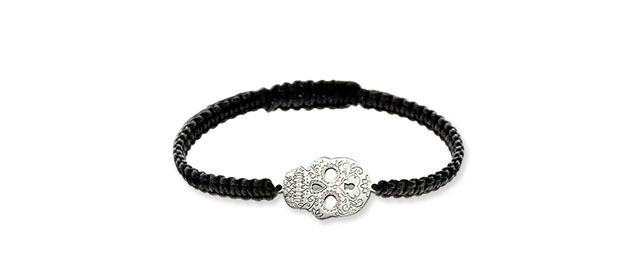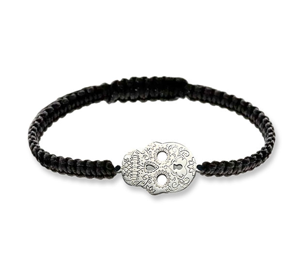 Pulsera de plata calavera catrina 18mm con macramé o nudos