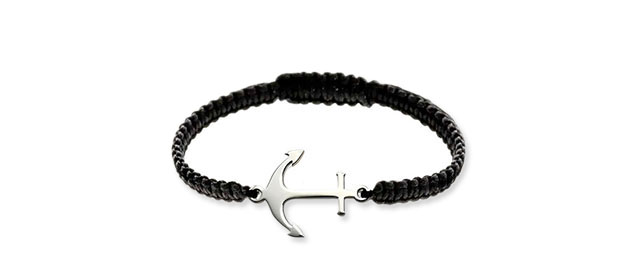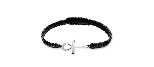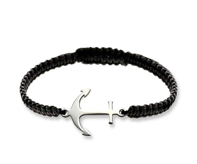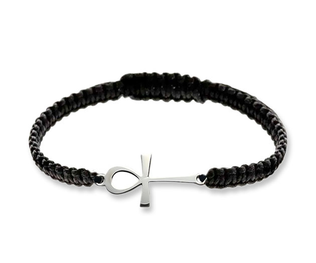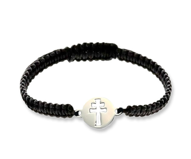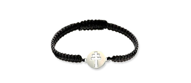 Pulsera de plata cruz de Caravaca con macramé o nudos