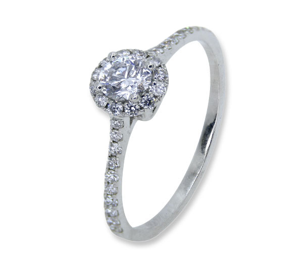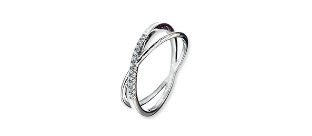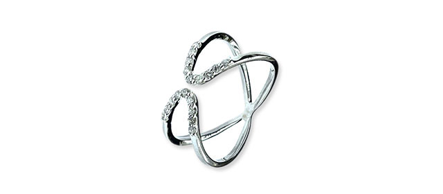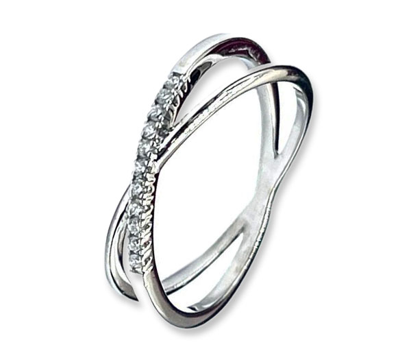 Anillo abierto en oro blanco y diamantes de talla brillante