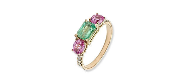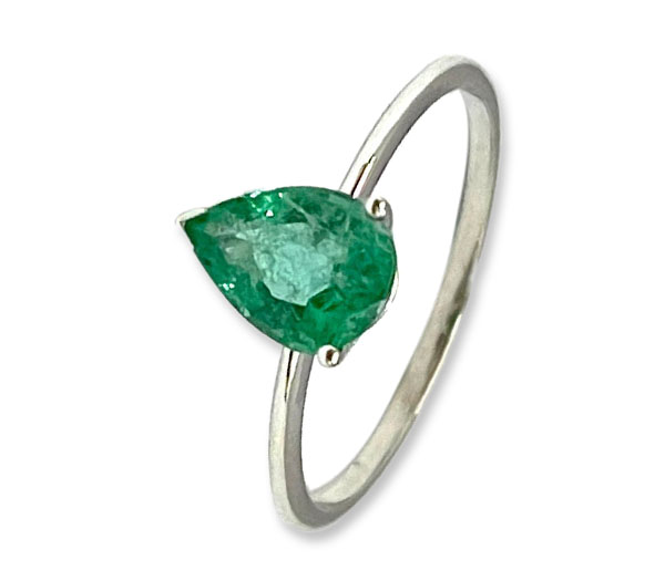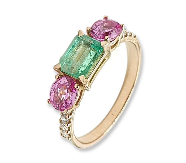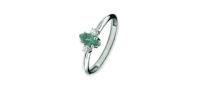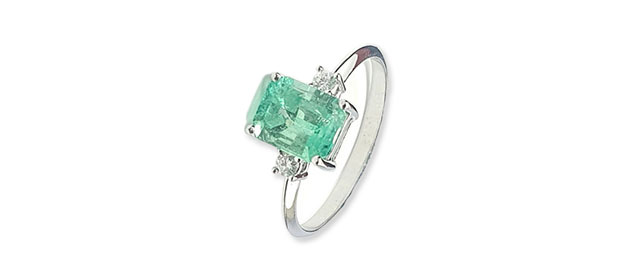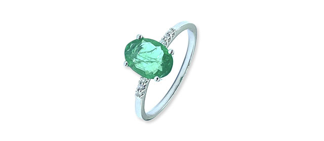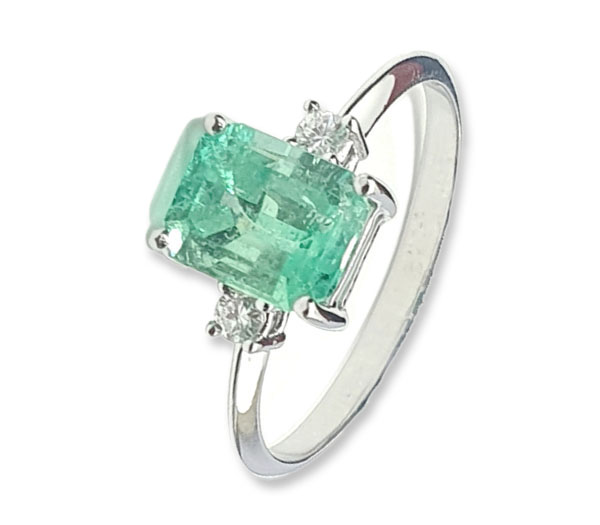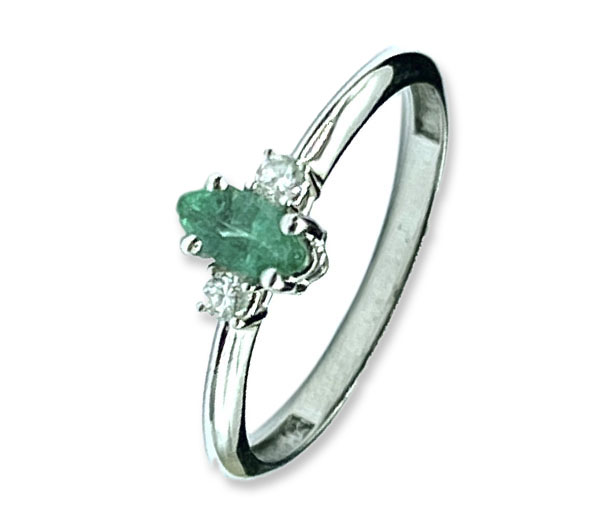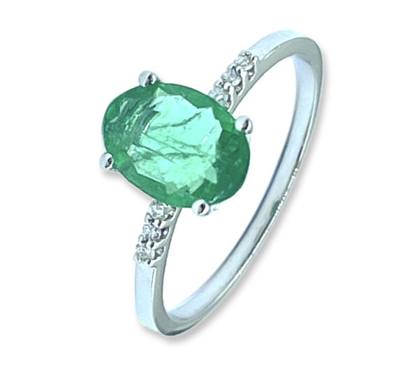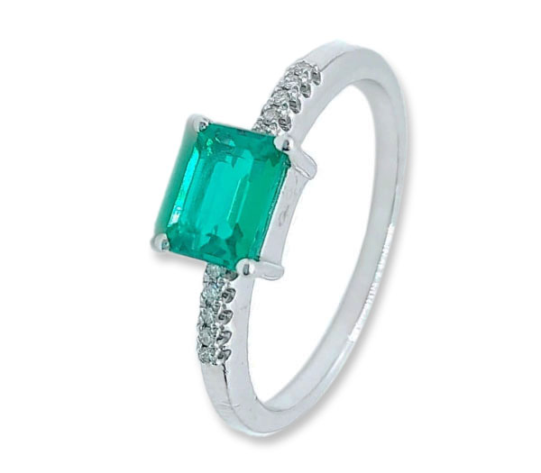 Anillo con Esmeralda recristalizada y diamantes talla brillante