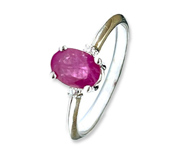 Anillo rubí con brillantes en oro blanco. Anillo Rubí Oval 7x5mm