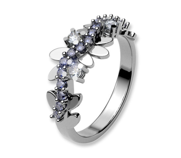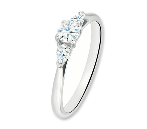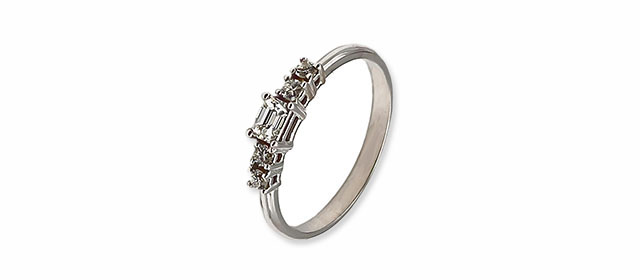 Anillo con diamantes talla brillante central y diamantes talla pera en brazo