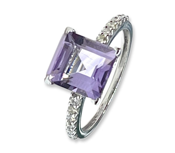 Anillo piedra natural amatista en talla princesa 8x8mm