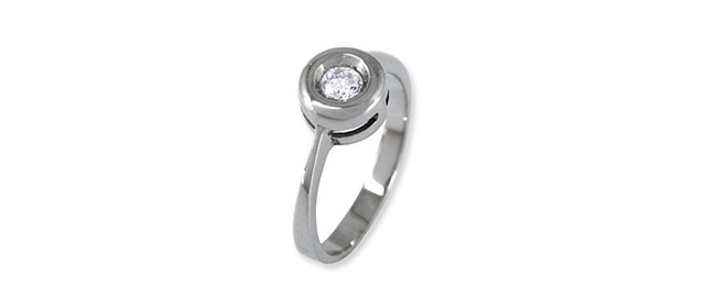 Solitario con diamante talla brillante, engarzado en Chatón. Peso 0.06Cts