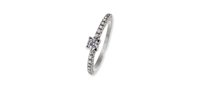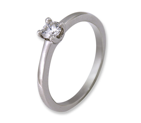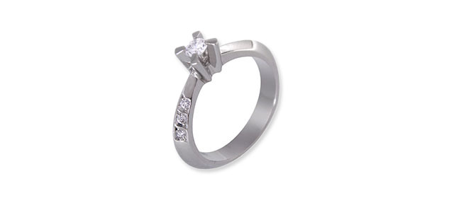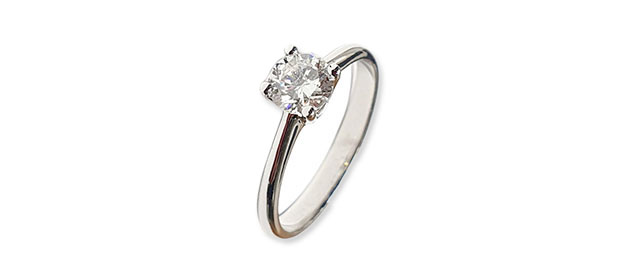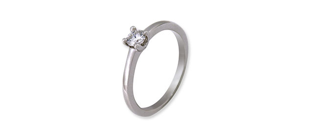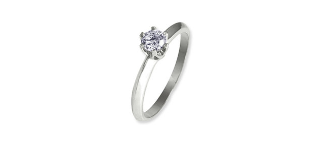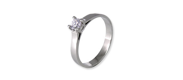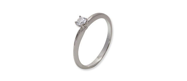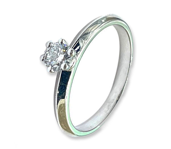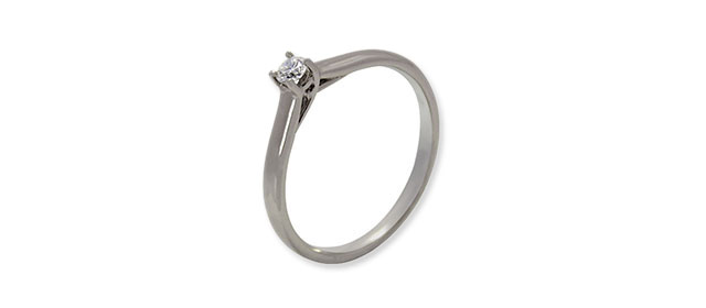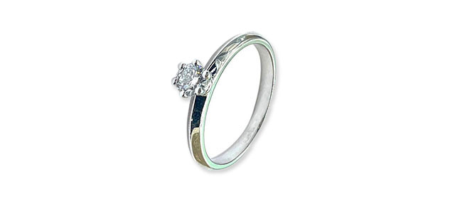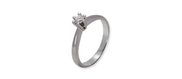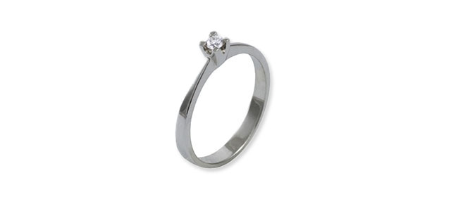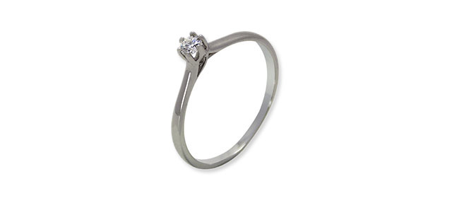 Solitario con diamante talla brillante en seis garras de hilo finas. Peso de 0.20Cts a 0.35Cts