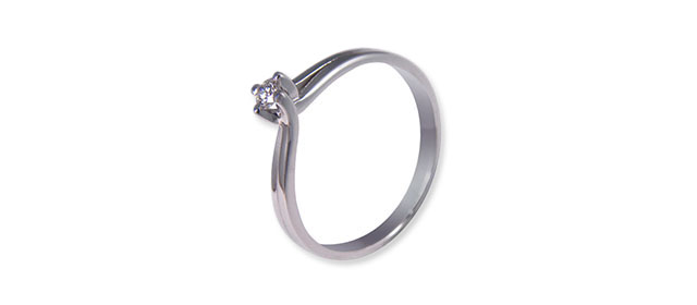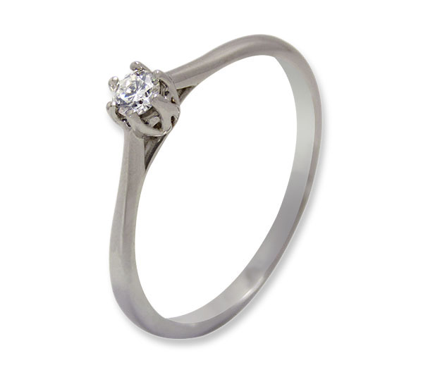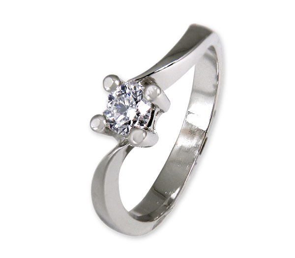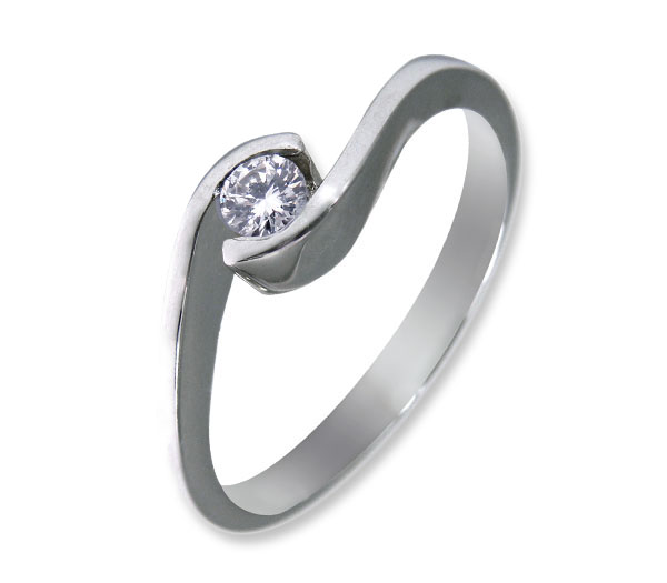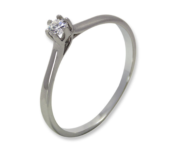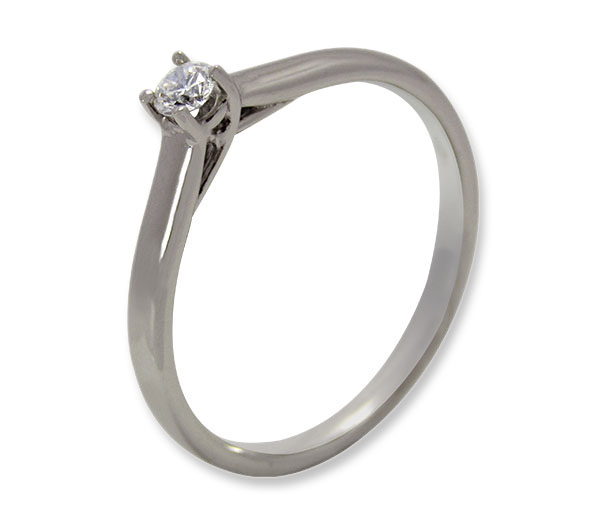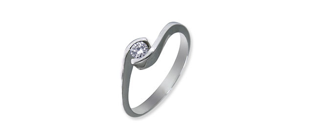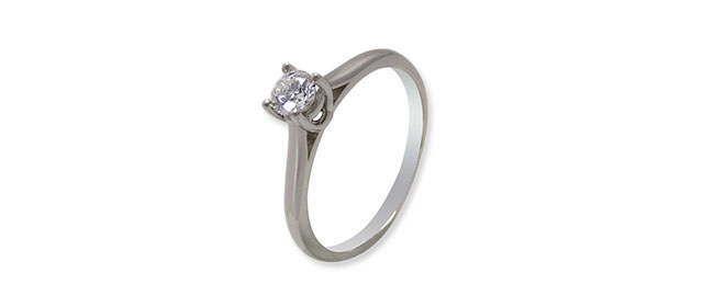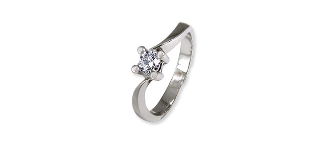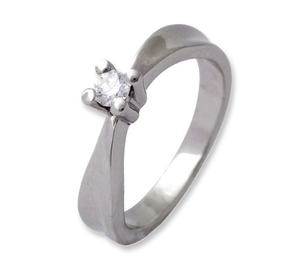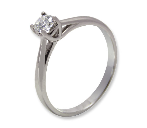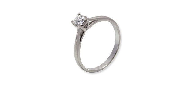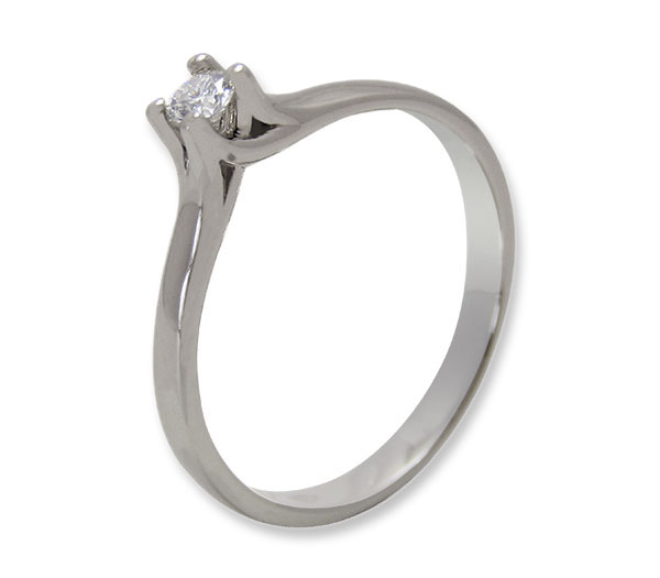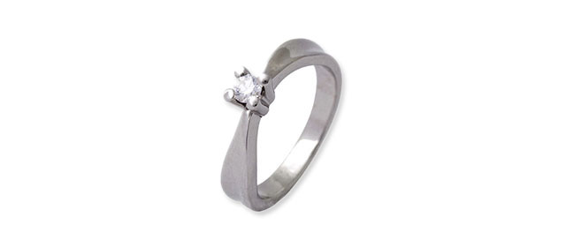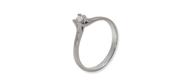 Solitario con diamante talla brillante, brazo girado. Peso de 0.10Cts a 0.19Cts