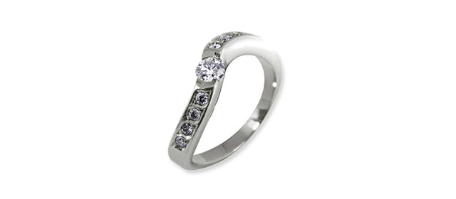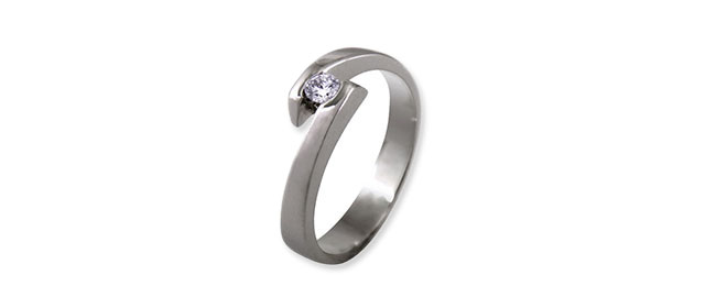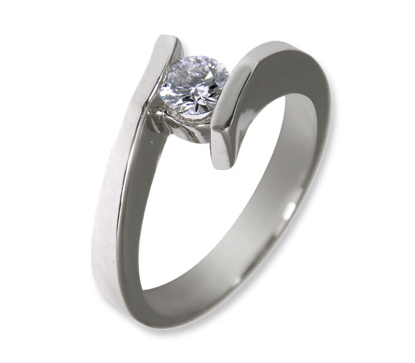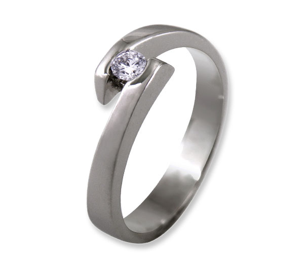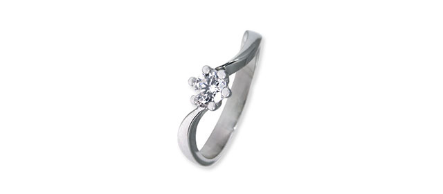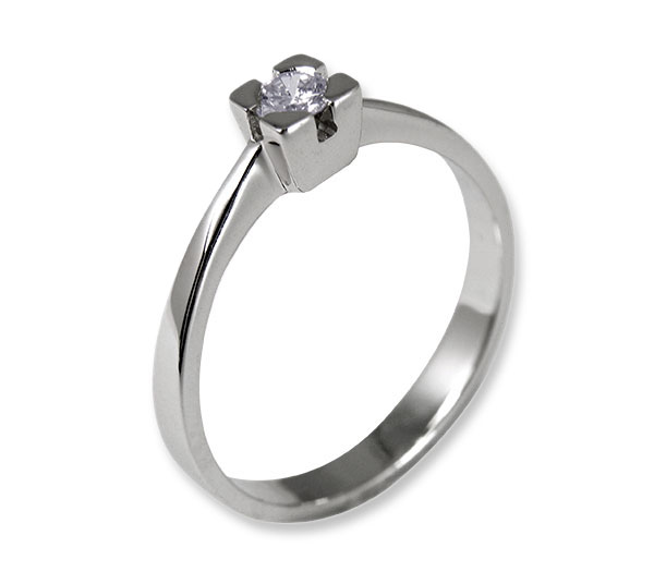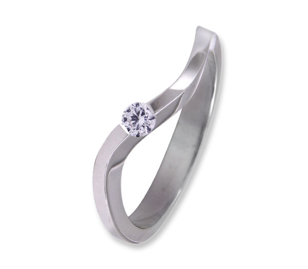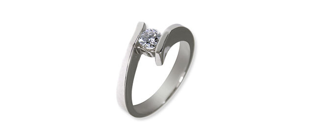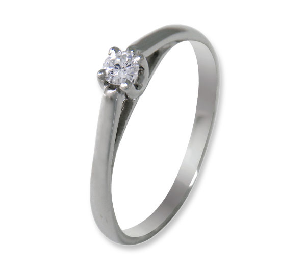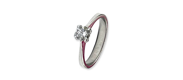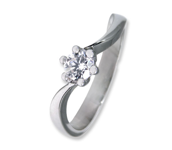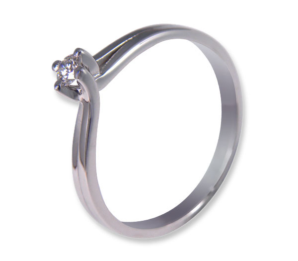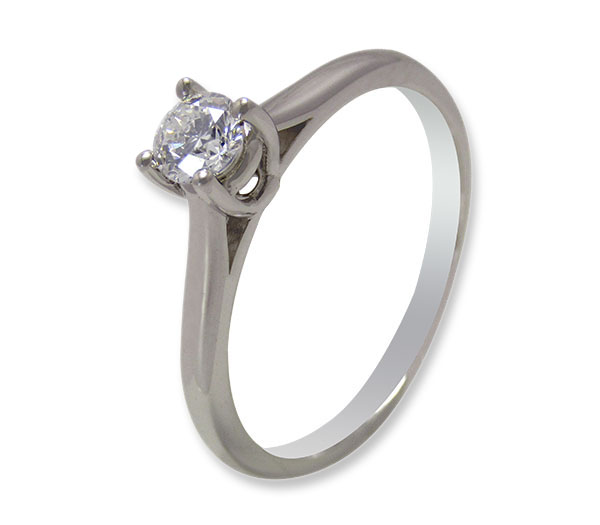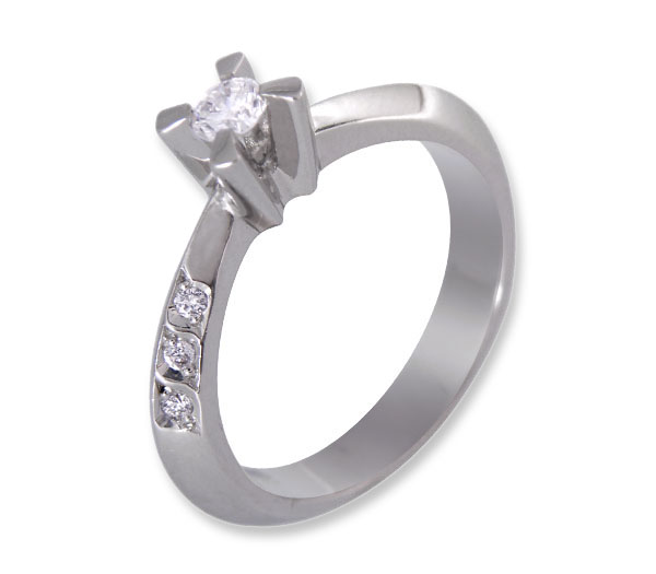 Solitario con diamante talla brillante, brazo girado. Peso de 0.10Cts a 0.19Cts