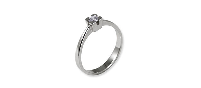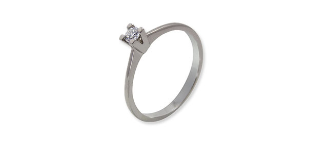 Solitario con diamante talla brillante, base cuadrada. Peso de 0.13Cts a 0.22Cts