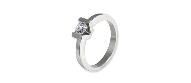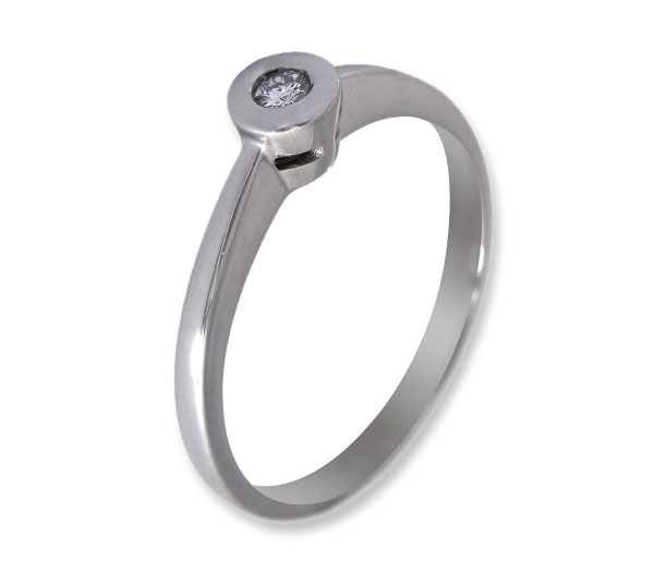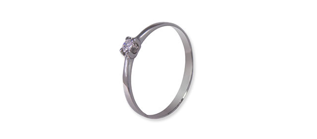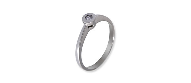Solitario con diamante talla brillante, engarzado en cincel. Peso de 0.09Cts a 0.15Cts