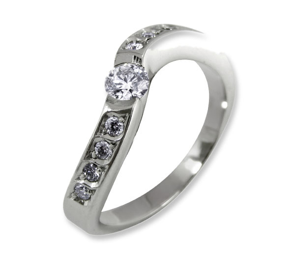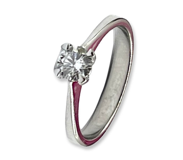 Solitario con diamante talla brillante, brazo girado. Peso 0.29Cts