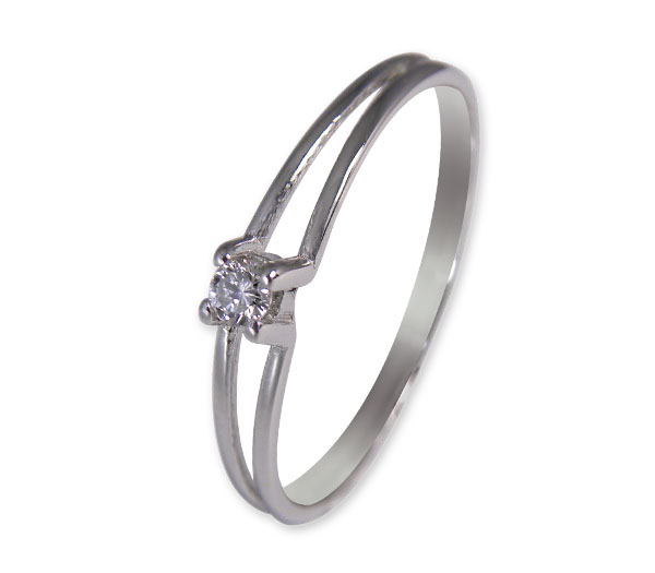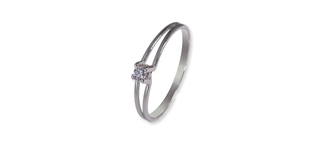 Solitario con diamante talla brillante, brazo doble. Peso 0.07Cts