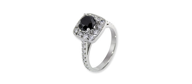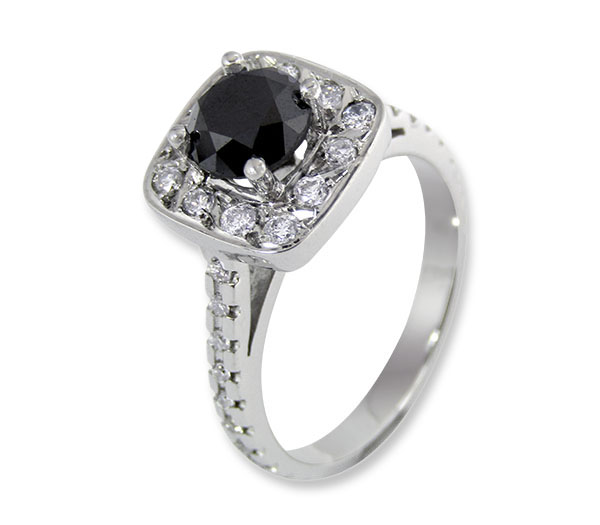Solitario con diamante negro central 1.35Cts. Orla y brazo de brillantes con peso 0.50Cts