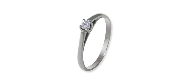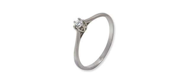 Solitario con diamante talla brillante en seis garras de hilo. Peso de 0.08Cts a 0.14Cts