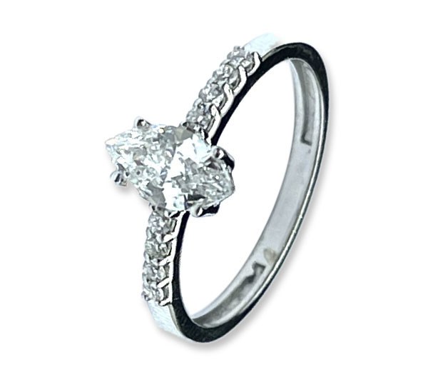 Anillo compromiso con marquisse 0.70Cts y brillantes en brazo. Peso total 0.82Cts
