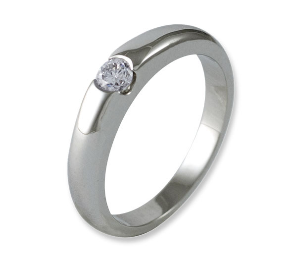 Solitario con diamante talla brillante. Parte superior del brazo plana. Peso de 0.10Cts a 0.50Cts