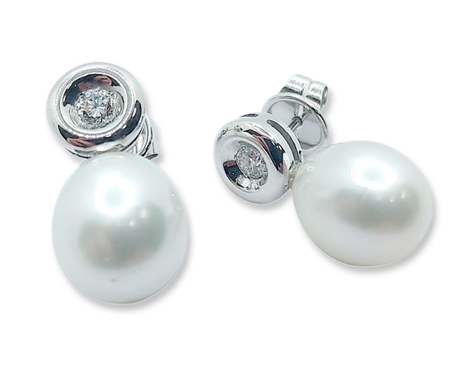 Pendientes tipo dormilón, con diamantes talla brillante garra oval