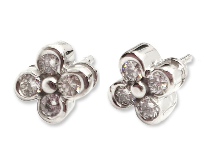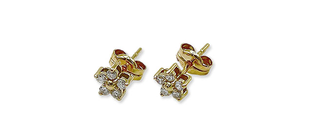 Pendientes flor con bisel con 8 diamantes talla brillante