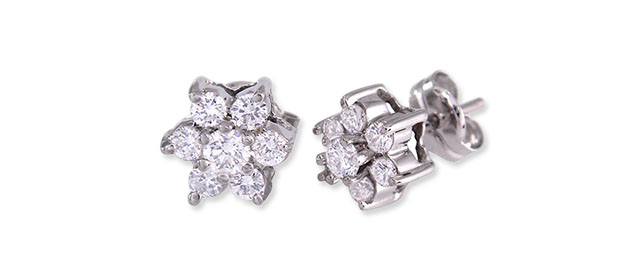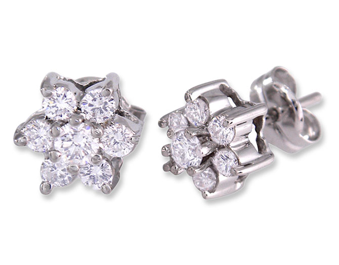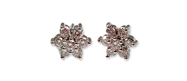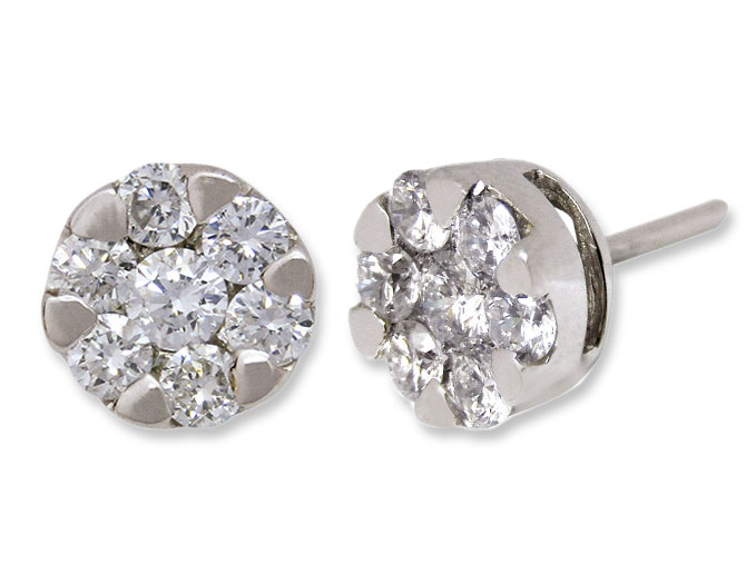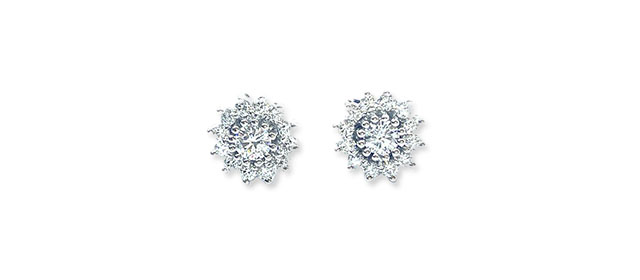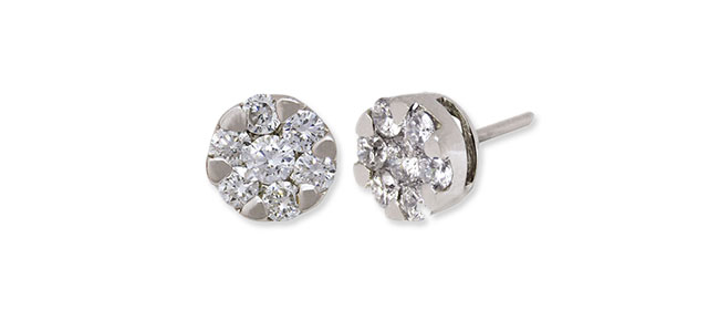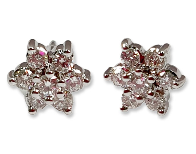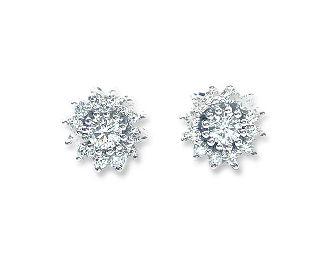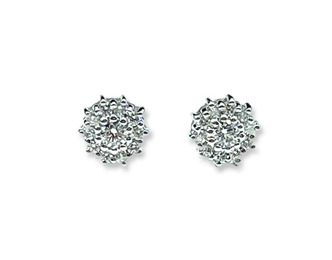 Pendientes rosetón pequeño con 14 diamantes talla brillante