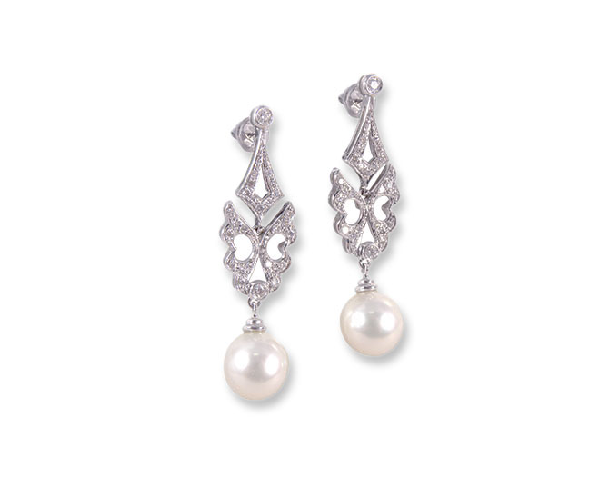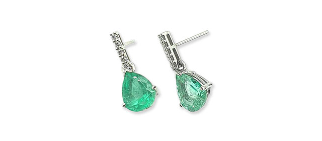 Pendientes con diamantes en talla brillante y esmeralda talla pera