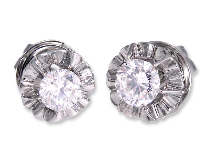 Pendientes tipo dormilón, con diamantes talla brillante garra de hilo redondas