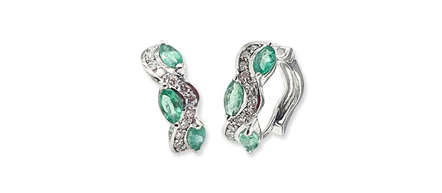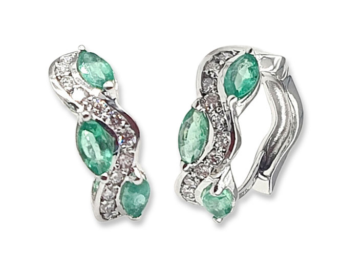 Pendientes tipo aro en onda con esmeraldas en talla marquisse y diamantes