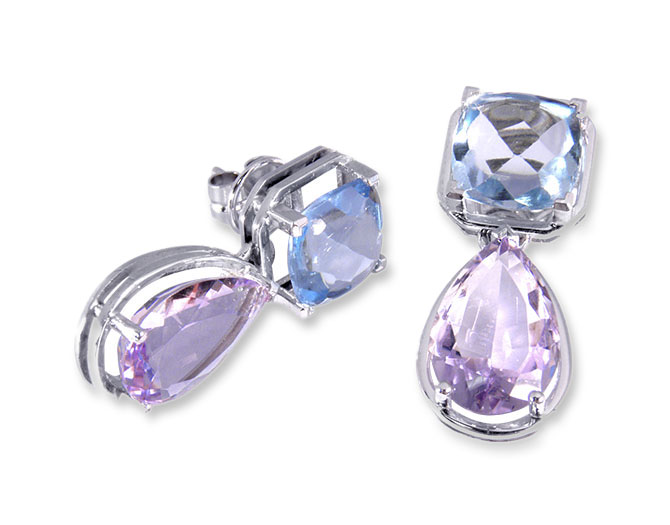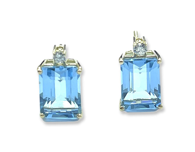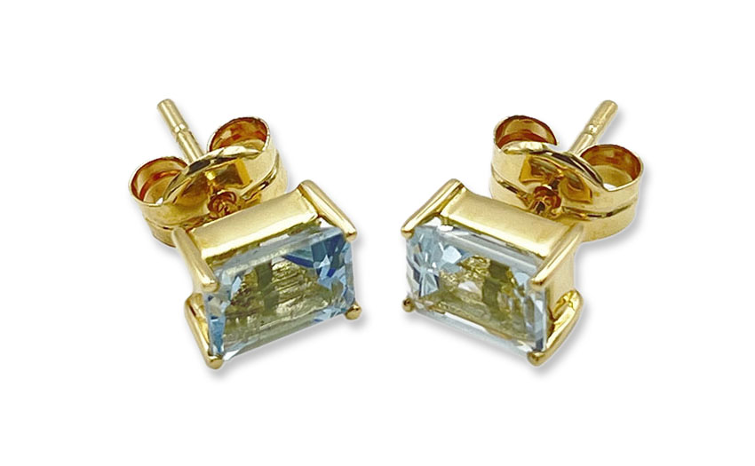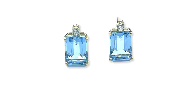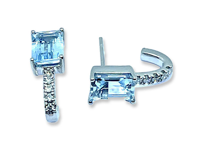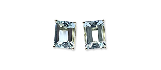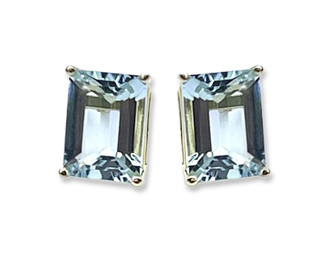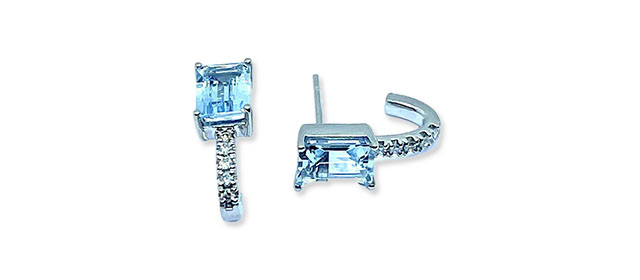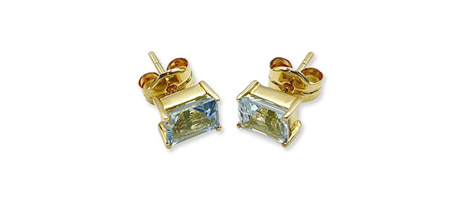 Pendientes en cuatro garras Berilo azul talla rectangular