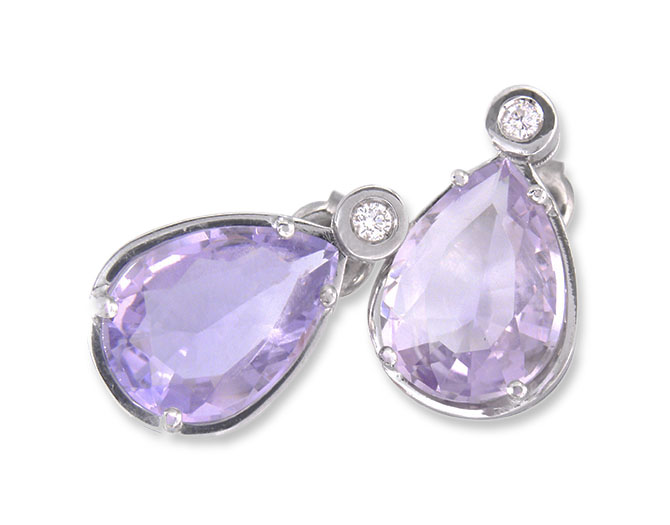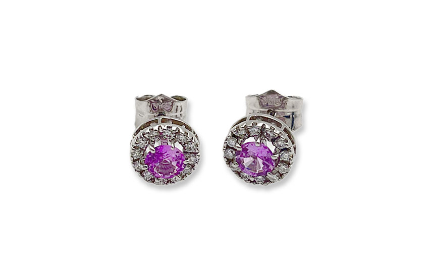 Pendienes Pink Lady, con zafiro rosa central en talla redonda
