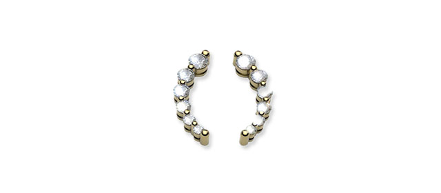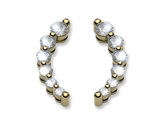 Pendientes tipo trepador con 12 diamantes talla brillante, engarzados en garra