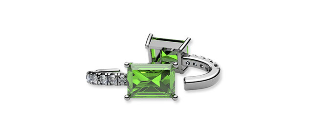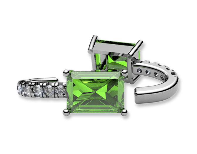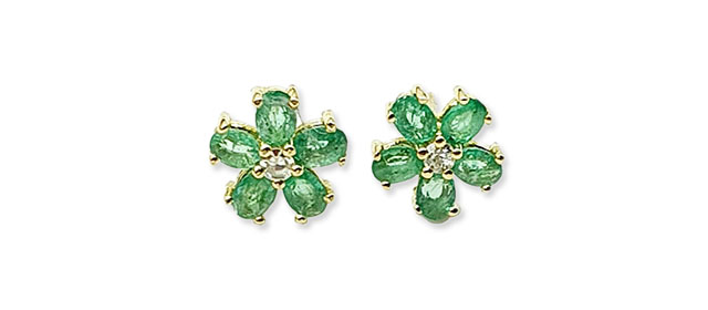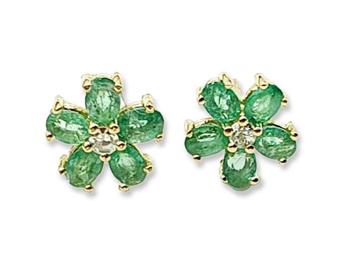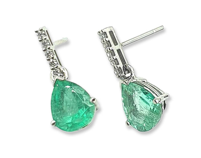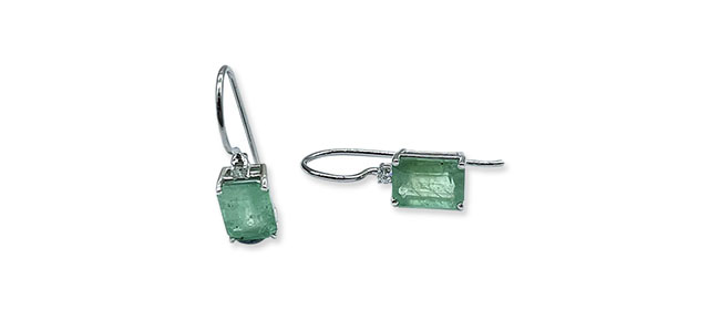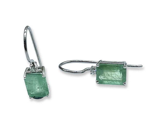 Pendientes con esmeraldas en talla rectangular 7x5mm y 10 diamantes